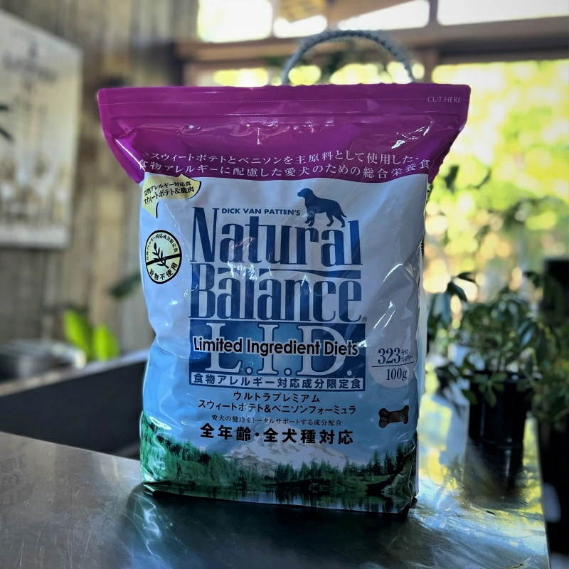 アメリカ本土の老舗メーカー、ナチュラルバランス。時代で繰り返すワンちゃんの皮膚アレルギー。鶏肉や米、トウモロコシや小麦でアレルギー反応が出てしまっている子にオススメです。もちろん発ガン性物質の"BHA"等は一切使っておりませんので、合成添加物でアレルギー反応がでる事もなく、被毛の状態がとても良くなります。黒い毛の子は特にツヤッツヤになるので飼い主様は驚かれています(^^)自信を持ってお奨めできる当店ベストセラーの店長一押しアレルギー用フードです。